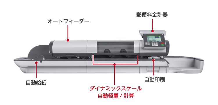 ダイナミックスケールなら、郵便物を搬送しながら自動計量/計算します。オートフィーダーと組合わせることにより 封筒自動給紙⇒計量⇒計算⇒印刷 までが全自動で処理できます。(iX-7に限ります)